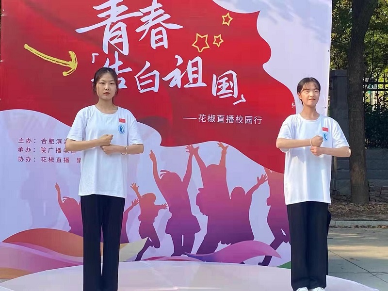 为了营造喜迎新中国成立72周年的热烈氛围,展现滨湖学子对祖国母亲的真挚情感,引导广大学生立爱国之志,践爱国之行。2021年9月28日上午,“青春告白祖国,遇见更美好的你”为主题的直播活动在学苑路上拉开了帷幕。此次活动由合肥滨湖职业技术学院团委主办,院广播电台承办,花椒直播平台协办。
