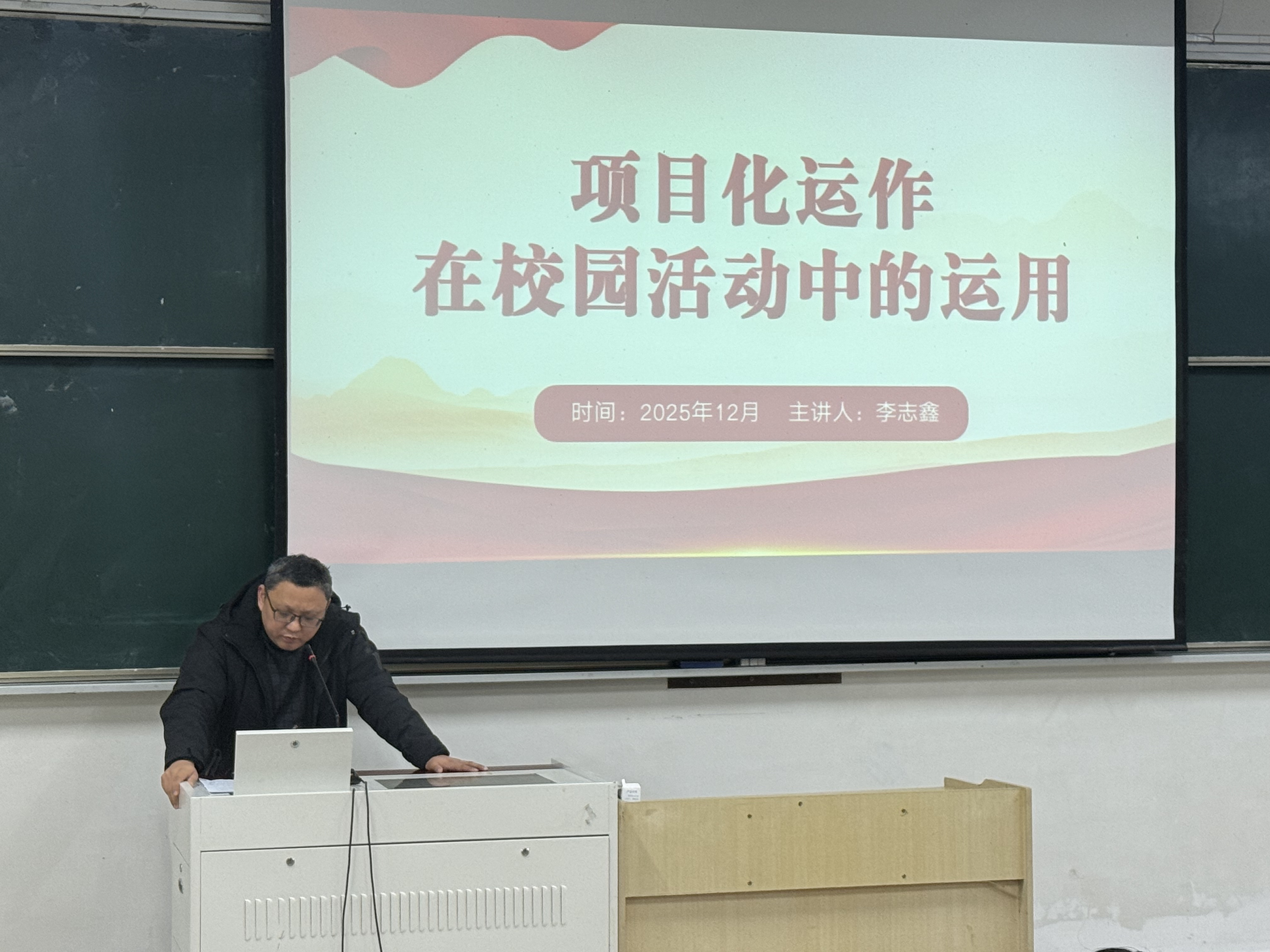 2025年12月24日,合肥滨湖职业技术学院青马班全体学员在行知楼西阶梯教室进行“项目化运作在校园活动中的运用”课程培训。本次培训由团委书记李志鑫为全体青马班学员授课。旨在通过系统授课帮助学员掌握项目化运作思维,提升校园活动策划与执行的专业能力。 课堂上,李志鑫书记紧扣